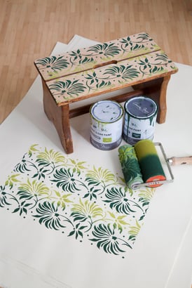 "Bollerwagen mit Annie Sloan Chalk Pain Amsterdam Green und Floralem Muster streichen":