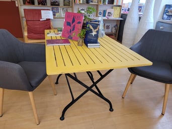 Lese-/Ladentisch im Buchladen: Tilton Gelb und transparentes Wachs.