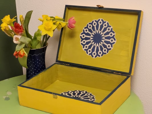 Haben Sie Lust, in einer kleinen netten Runde (3-5 Teilnehmer-Innen) eine farbenfrohe Schatzkiste zu gestalten?