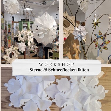 "Sterne & Schneeflocken falten" im Dezember 2023, abgehalten im Zwischenraum/Weilheim.